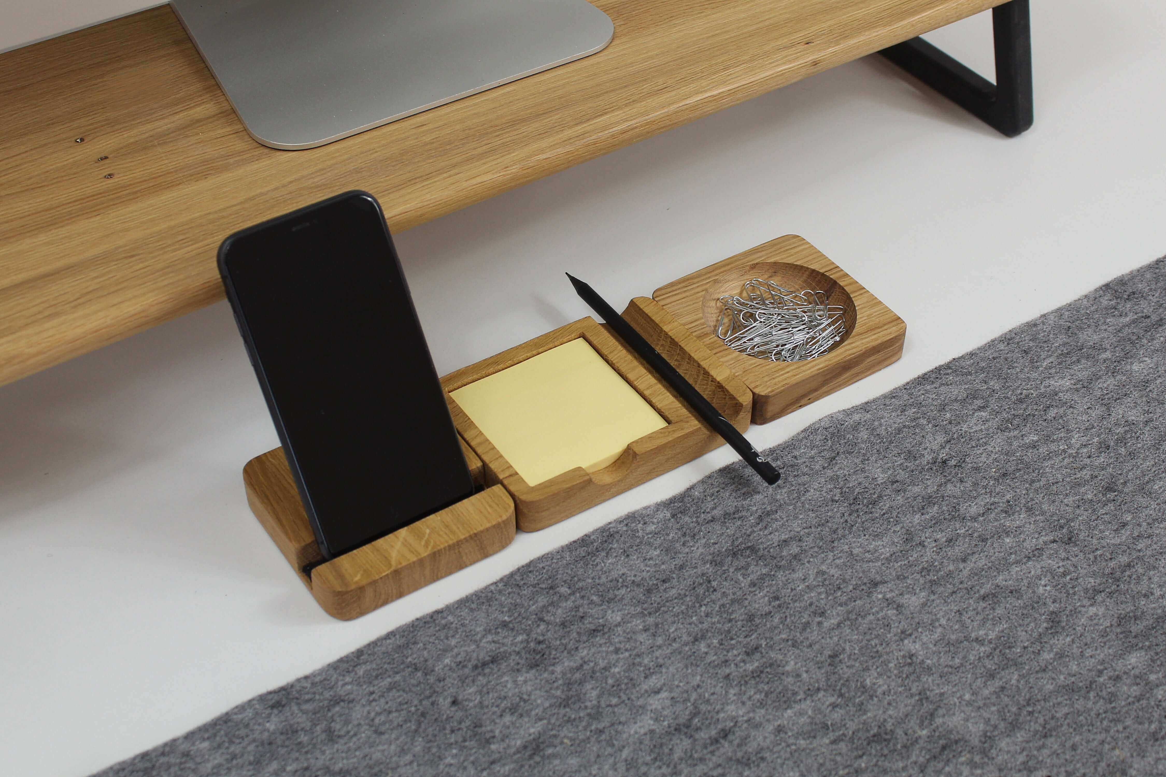 A headphone stand is a practical accesories that helps keep your desk tidy. Thanks to it, your headphones are always within reach any time you need. The vertical stand also saves space, for your tablet or Macbook, making it perfect for small spaces.