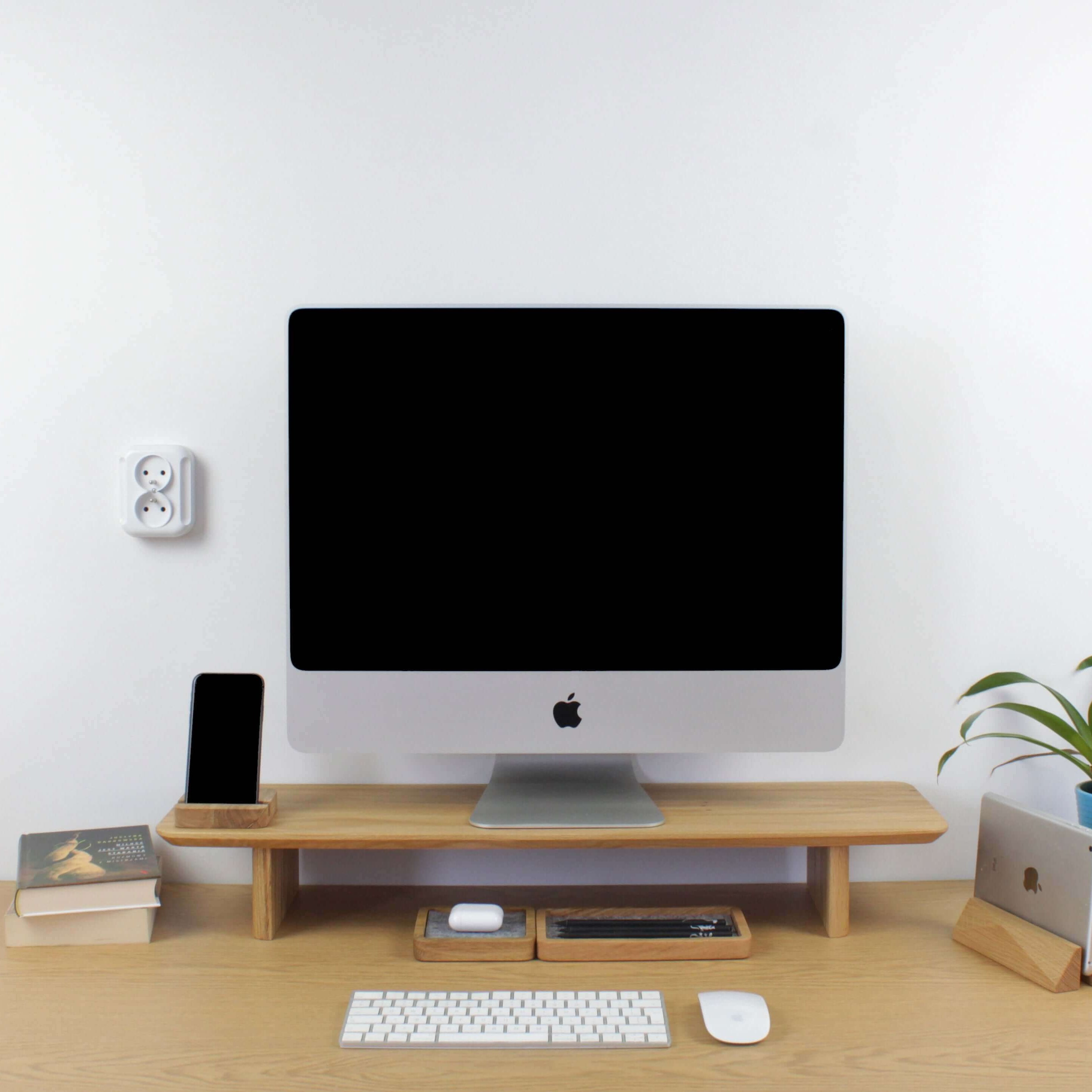 Produktivität beginnt mit Ordnung. Unsere Kopfhörer- und Handyständer aus Holz halten Ihre Geräte stilvoll in Reichweite.