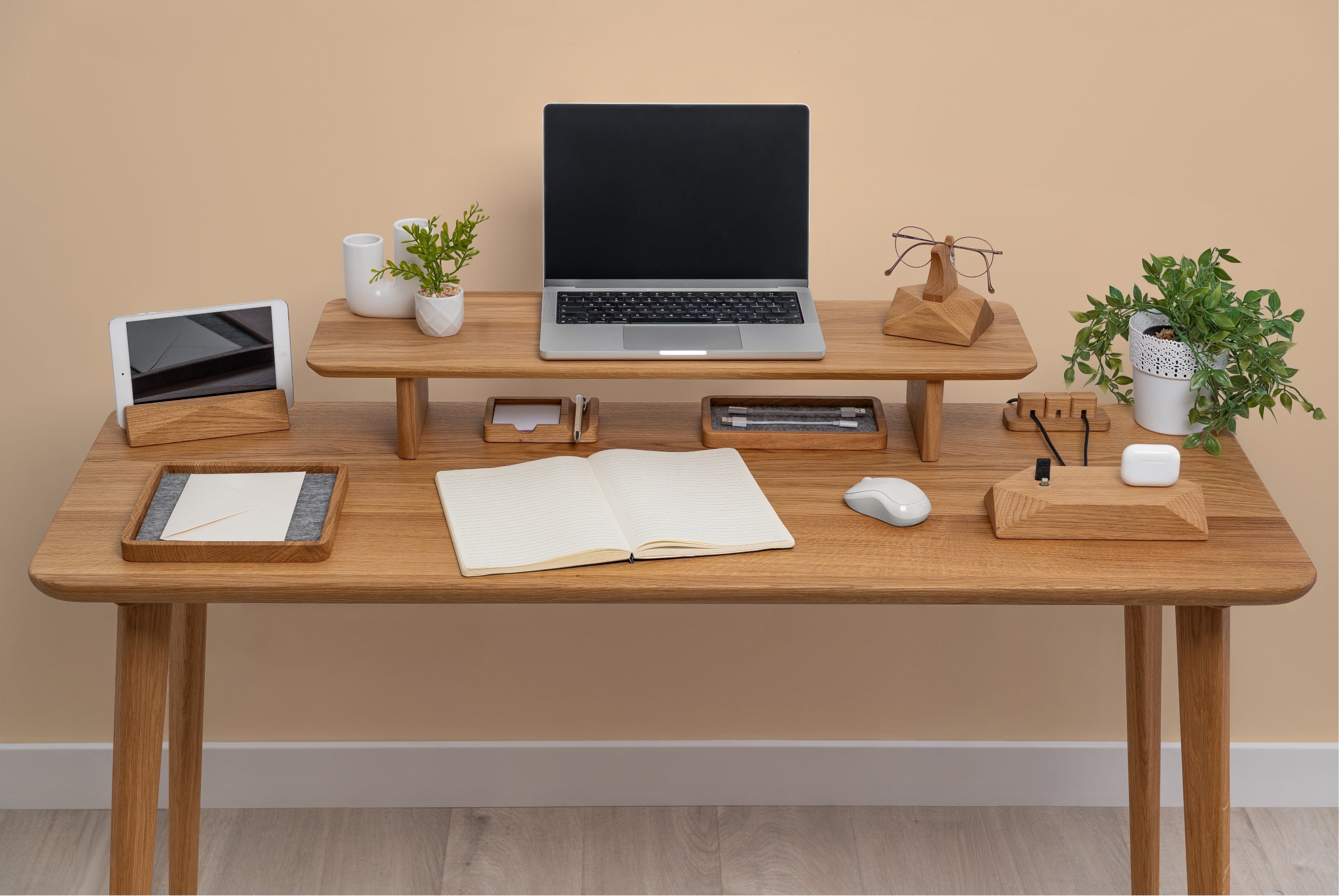 Ein aufgeräumter Schreibtisch ist nicht nur eine Frage der Ästhetik – Studien zeigen, dass ein sauberer Arbeitsplatz die Konzentration und Produktivität verbessert. Ein Holz-Organizer verleiht zudem jedem Interieur Wärme und einen natürlichen Charakter.